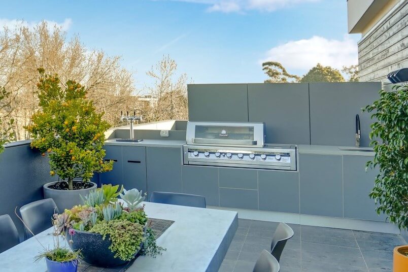 This smart Elwood balcony project was constructed around our client’s appliances that he had already purchased. A Gasmate 6 Burner BBQ with an integrated side burner sits in the centre of the design, however, this wasn’t the main feature.